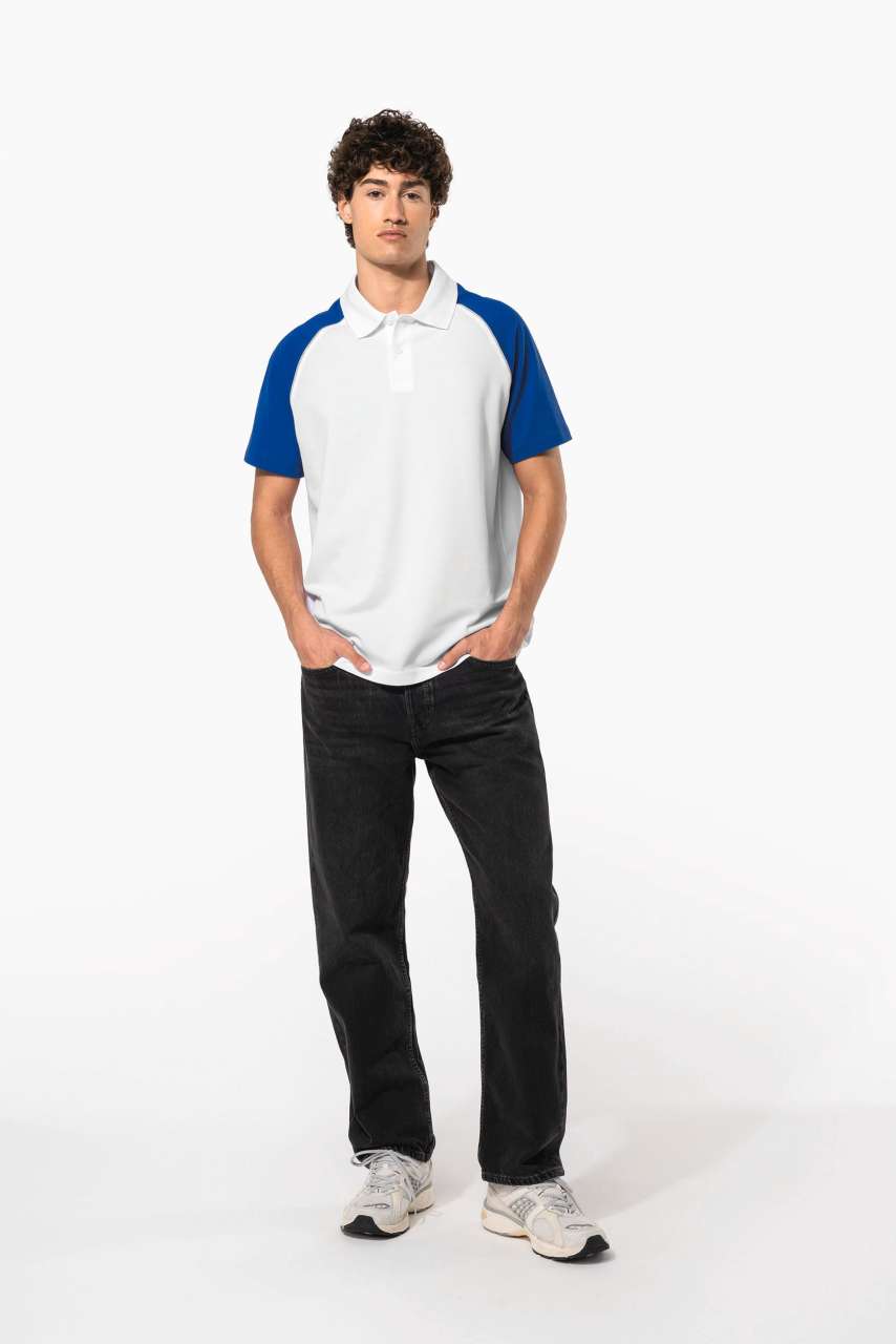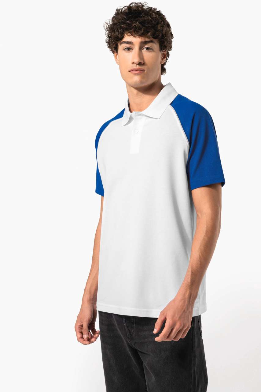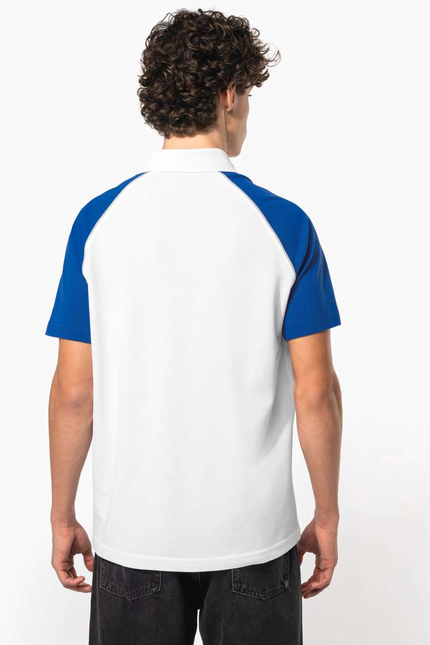 100% cotton piqué Ribbed collar with neck tape Contrast raglan sleeves with Light Grey contrast piping at the armholes 2-button matching placket Twin needle finishing Certified STANDARD 100 by OEKO-TEX® N° CQ 1007/7. IFTH