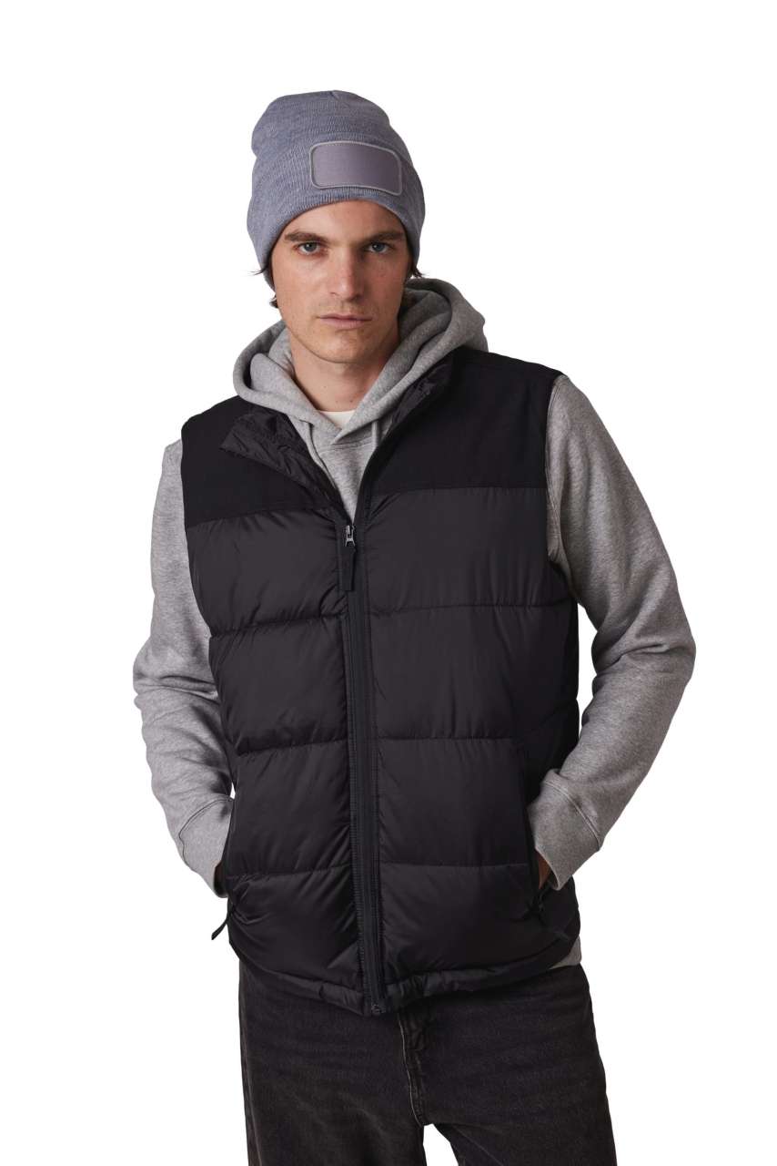 100% acrylic Knitted turn-up beanie in soft acrylic Cotton patch on the front for easy decoration access Tear-away brand label