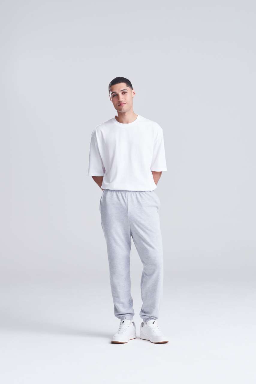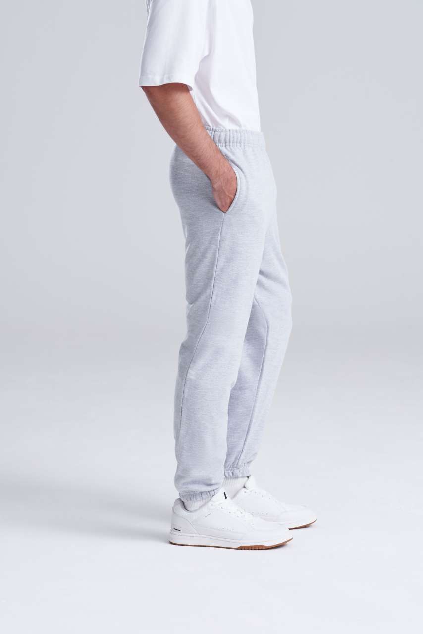 80% Ringspun Cotton/20% Polyester Relaxed fit Cuffed leg opening Elasticated waist with inner drawcords Brushed inner fleece Side pockets Tear away label 100% cotton faced fabric