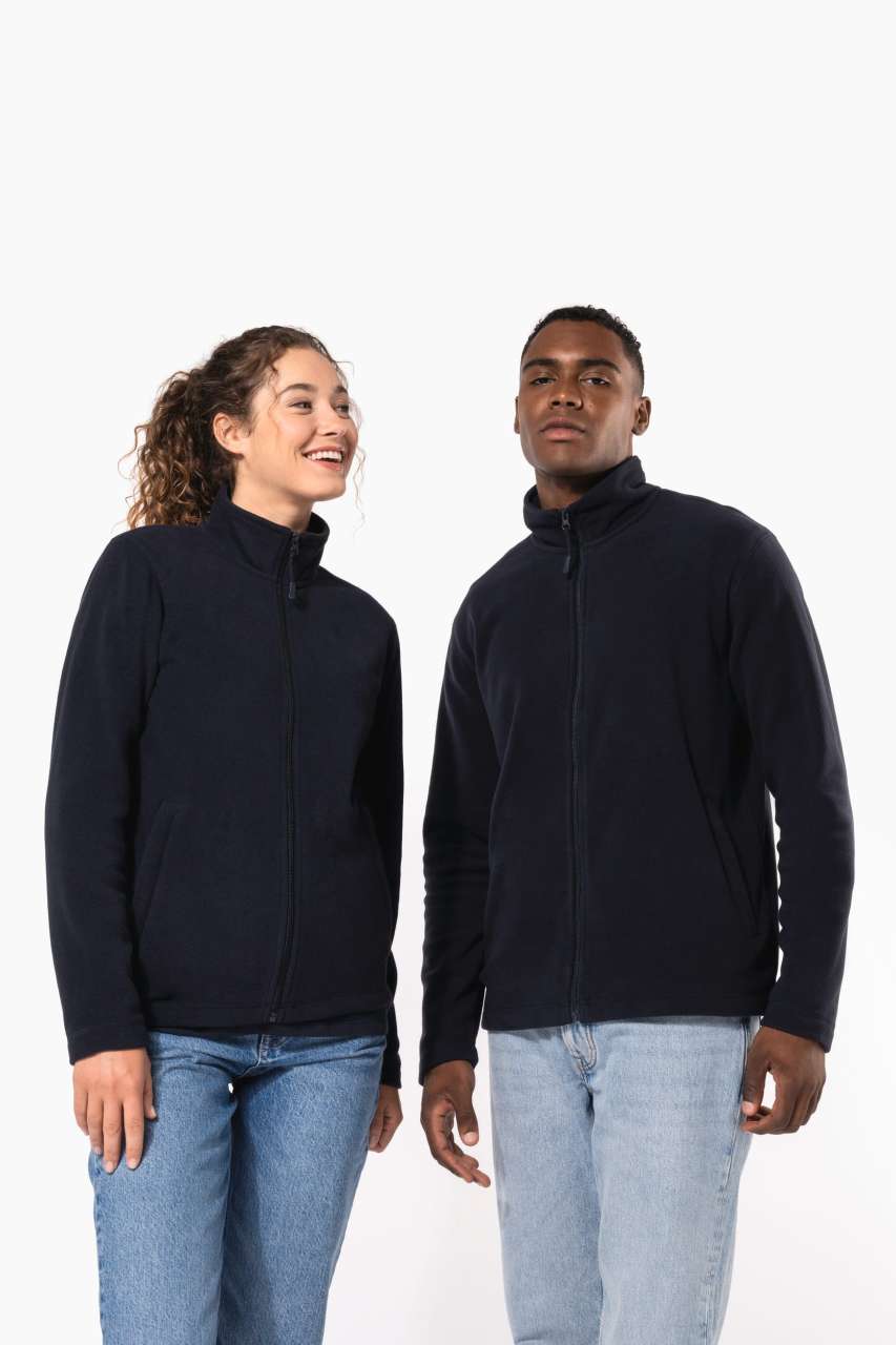 100% polyester microfleece Zip fastening and 2 front zip pockets