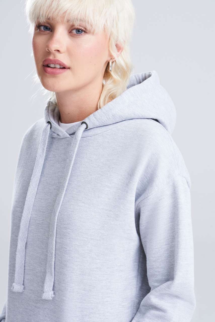 80% Ringspun Cotton/20% Polyester Relaxed fit Longline design Double fabric hood Brushed inner fleece Kangaroo pouch pocket Flat lace drawcords Twin needle stitching detail Tear away label 100% cotton faced fabric