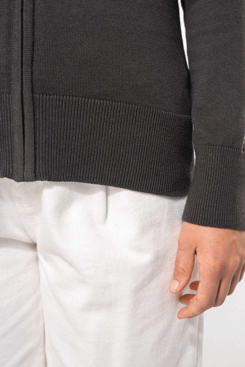 50% cotton/50% acrylic Shaped style Double layer cadet collar Smoke effect full zip front Taped neck Certified STANDARD 100 by OEKO-TEX® N° CQ 1007/7. IFTH