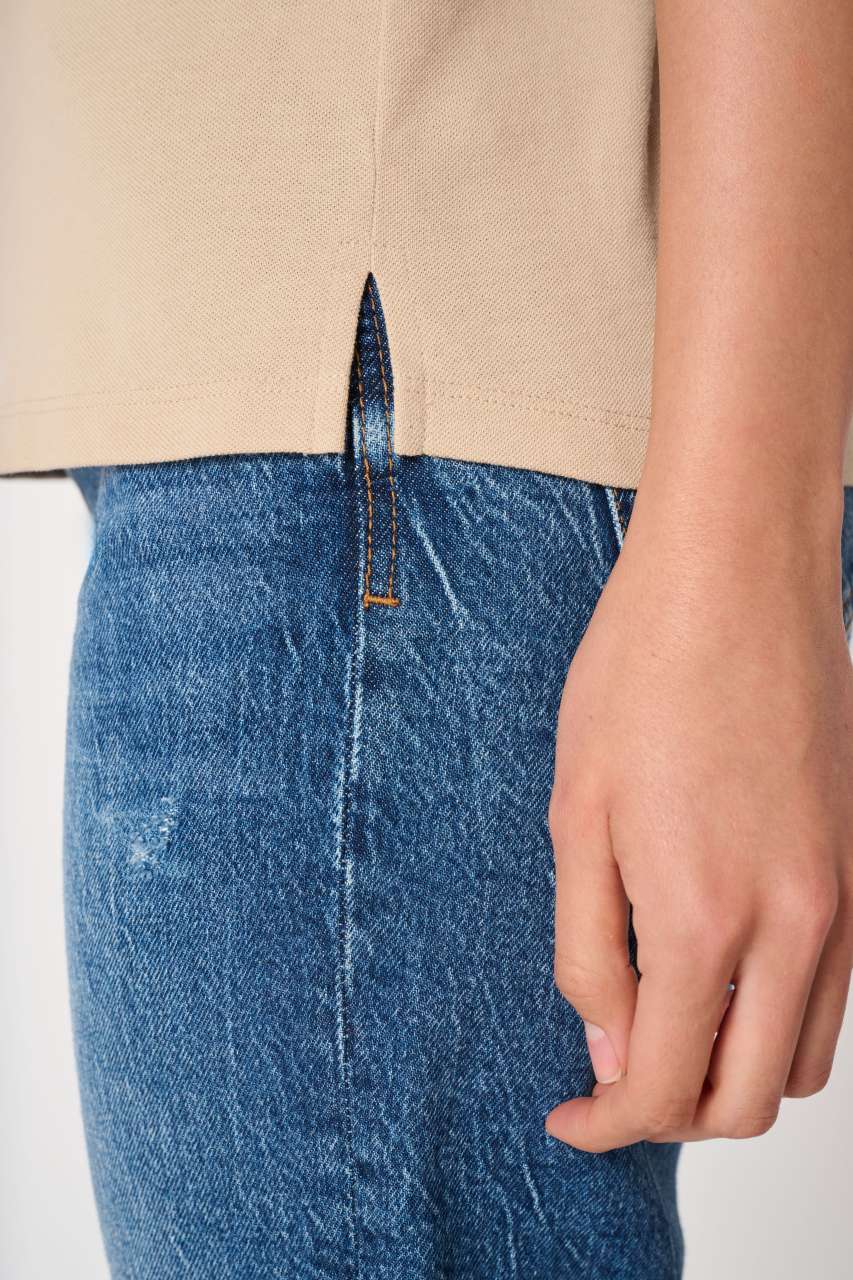 Straight fit 1×1 ribbed collar and sleeve hem