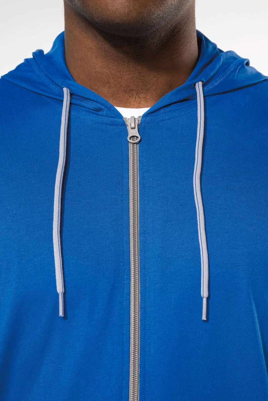 Contrasting zip and two-tone drawstring hood