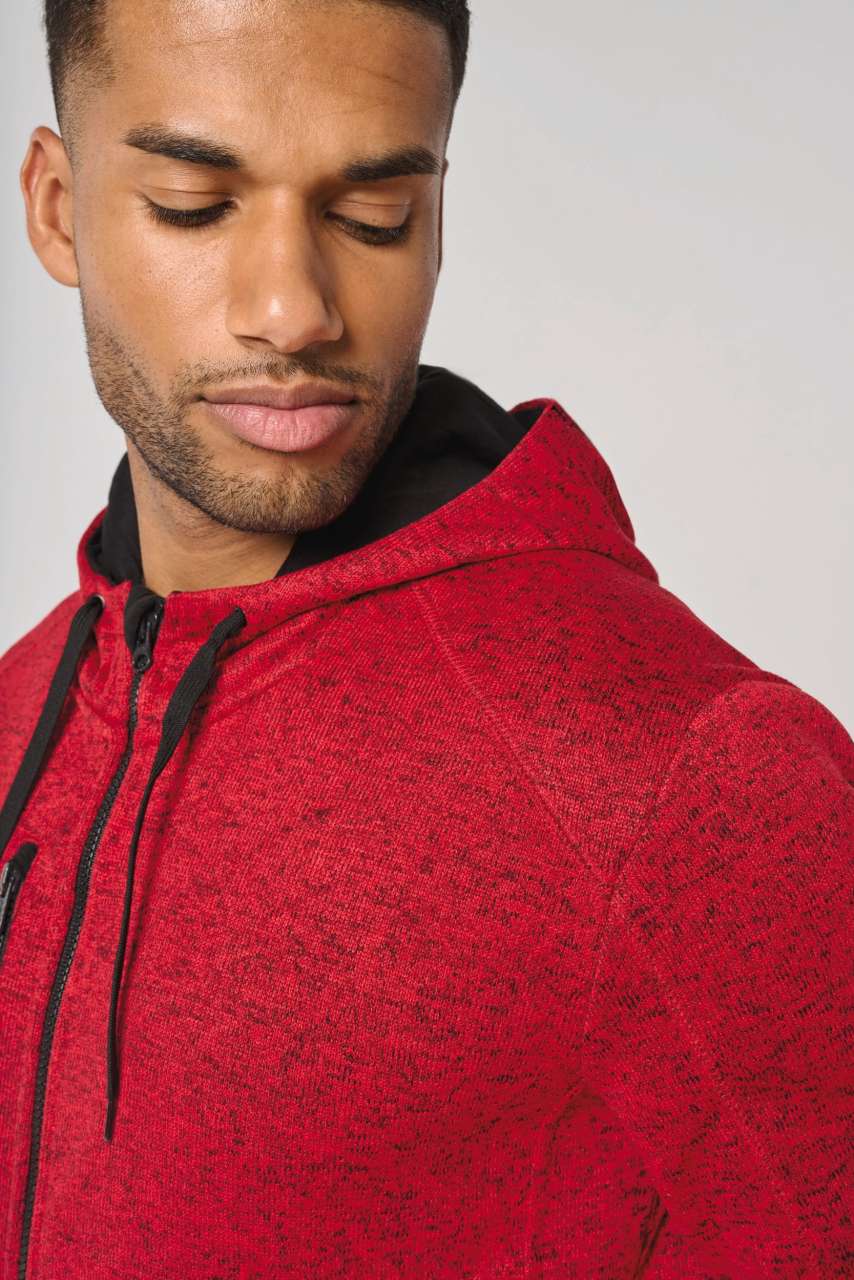 Hood with contrasting 100% cotton jersey lining and contrasting drawcord