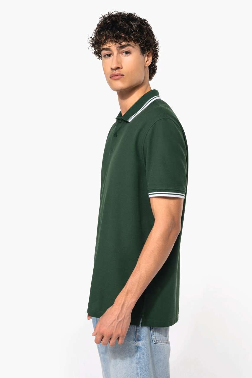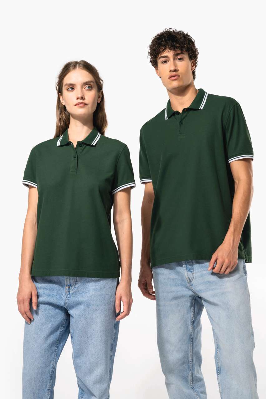 Rib finishes with contrasting trim at the neckline and cuffs