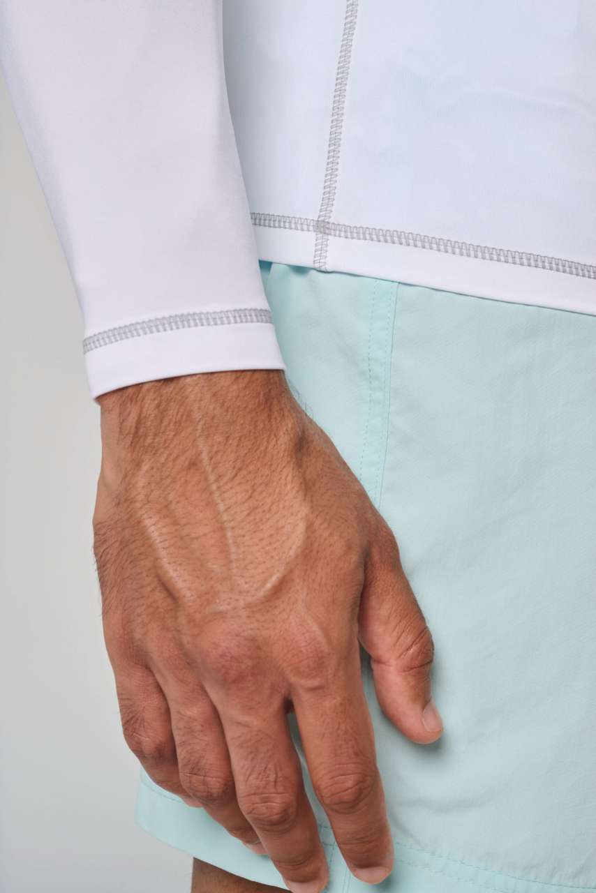 Elastic buckle inside front hem to insert the shorts’ drawstring and hold the t-shirt
