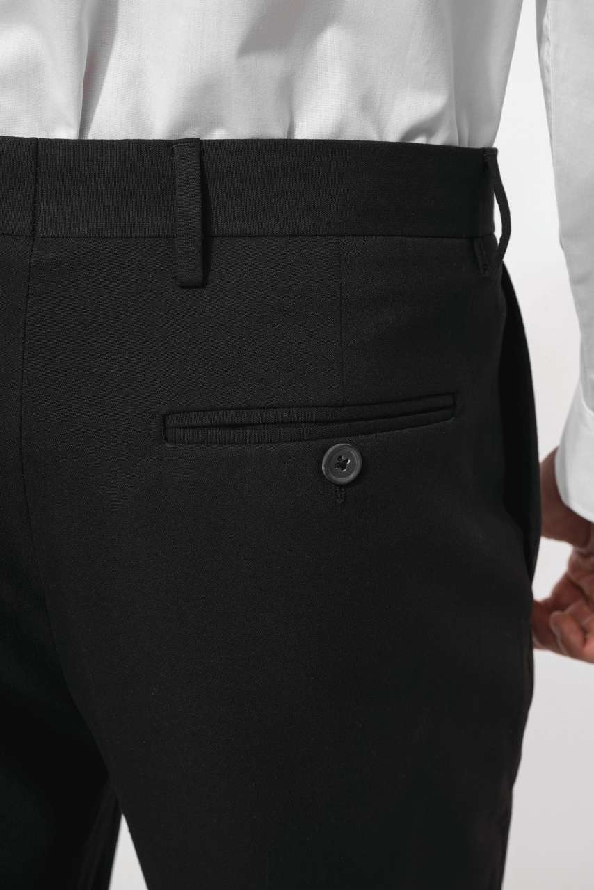 2 front Italian pockets and 2 back pockets with piping and buttons