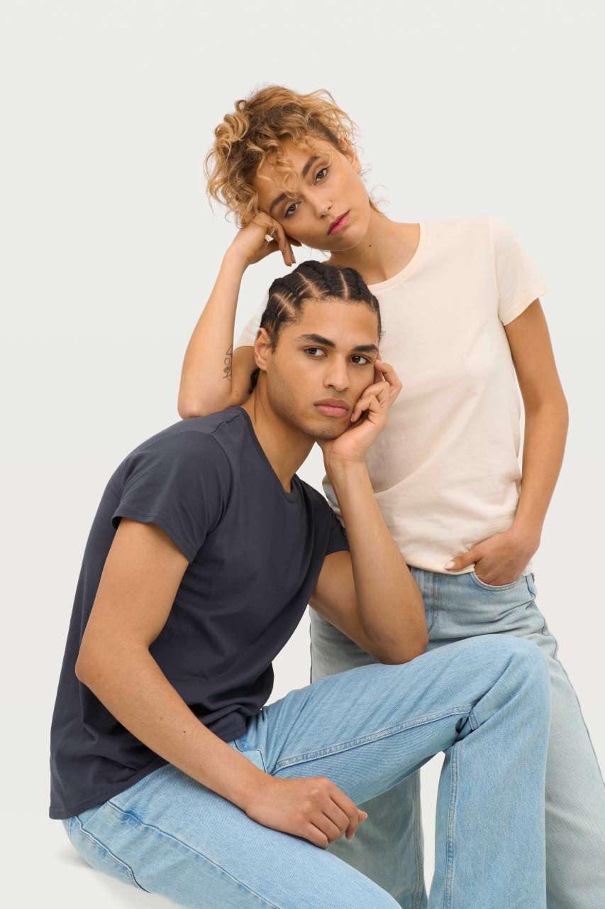 Quality 100% organically grown cotton Natural finish for a softer and smoother feel Style 100% cotton ribbed collar Round neck Neck tape Fitted cut Tubular