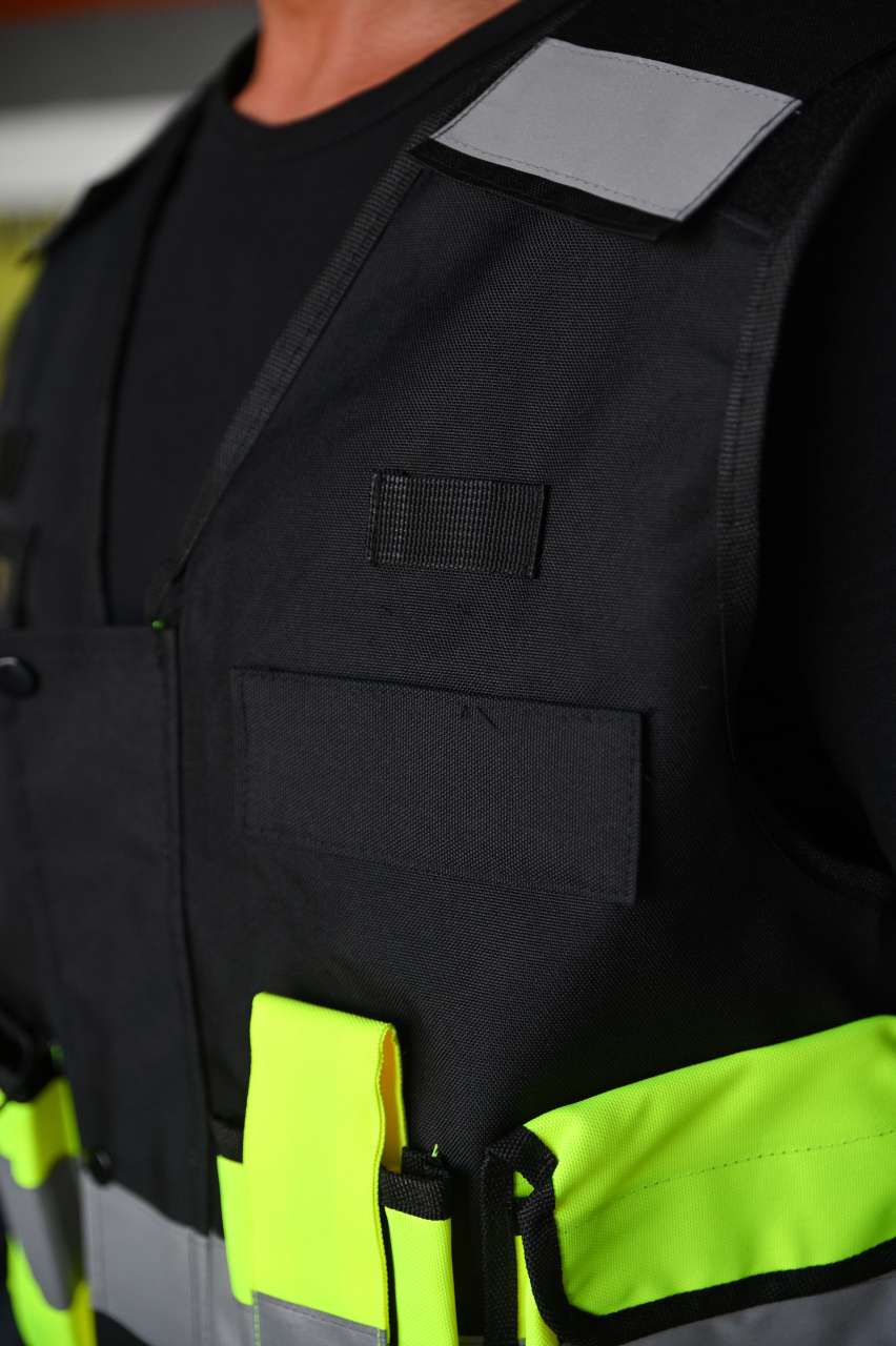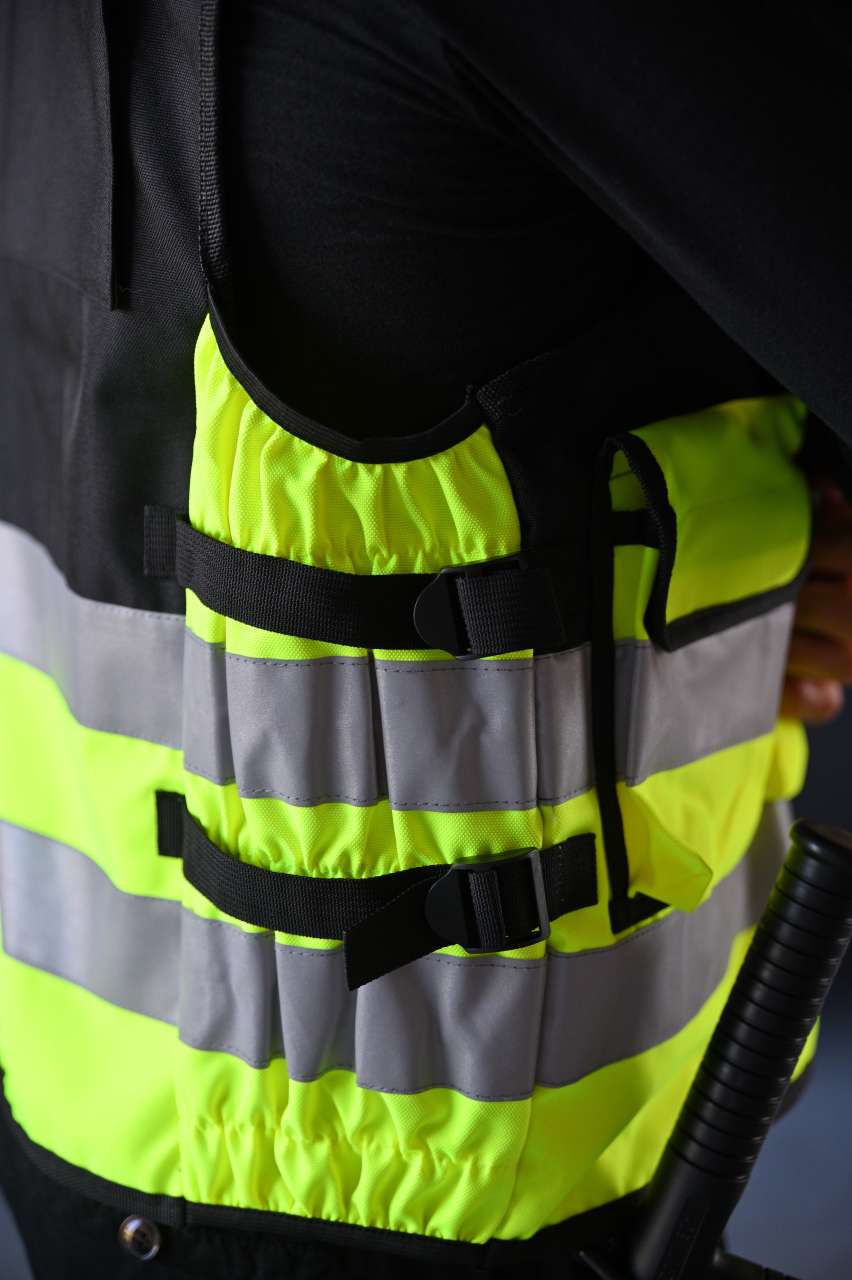 Elastic waistband, numerous pockets, 360° visibility