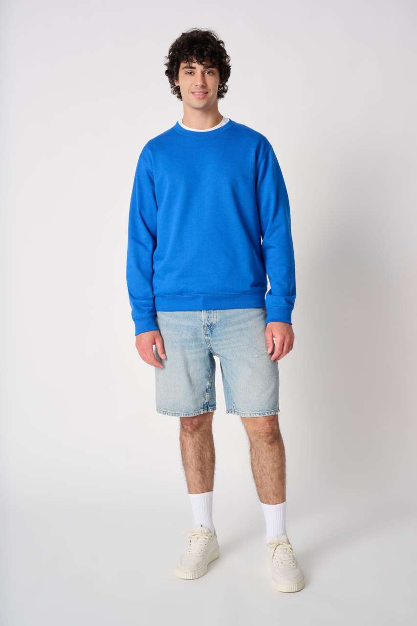 50% cotton / 50% polyester Brushed tubular fleece Straight fit 1×1 ribbed finish at collar, sleeve hems and bottom hem with double topstitching Tear-away brand label