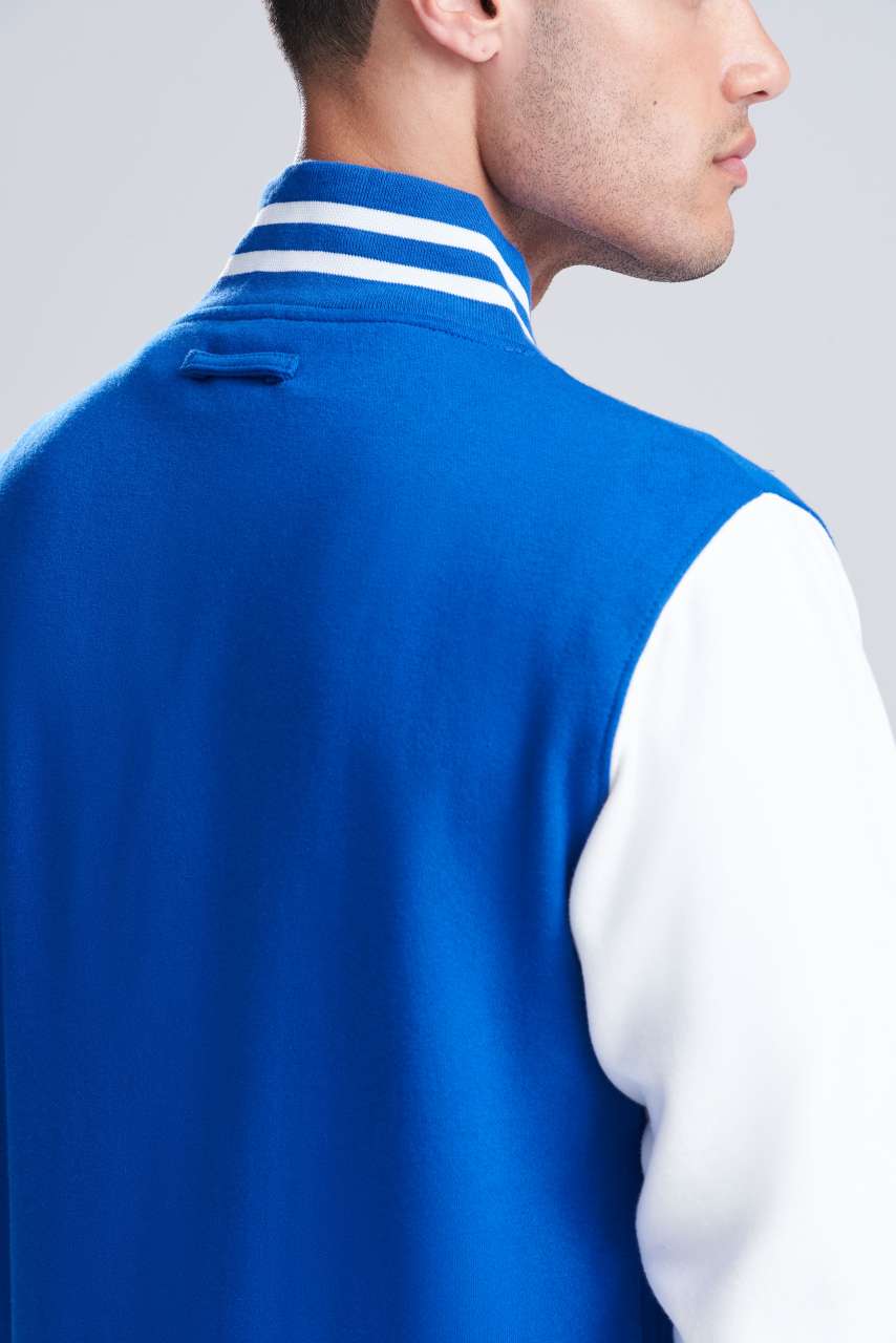 Knitted collar. cuffs and waistband with stripe details