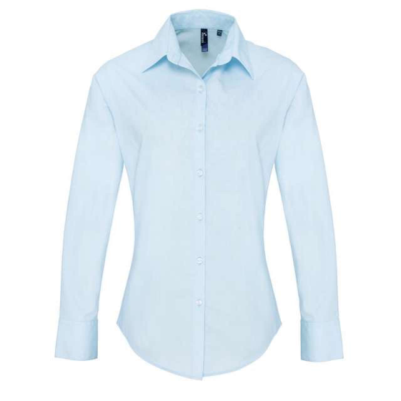 Fabric 65% Polyester. 35% Cotton Poplin 125gsm Features Supreme Poplin Soft collar styling Rounded bottom hem Bust and back darts Double buttons on the cuff Modern fit Easy care