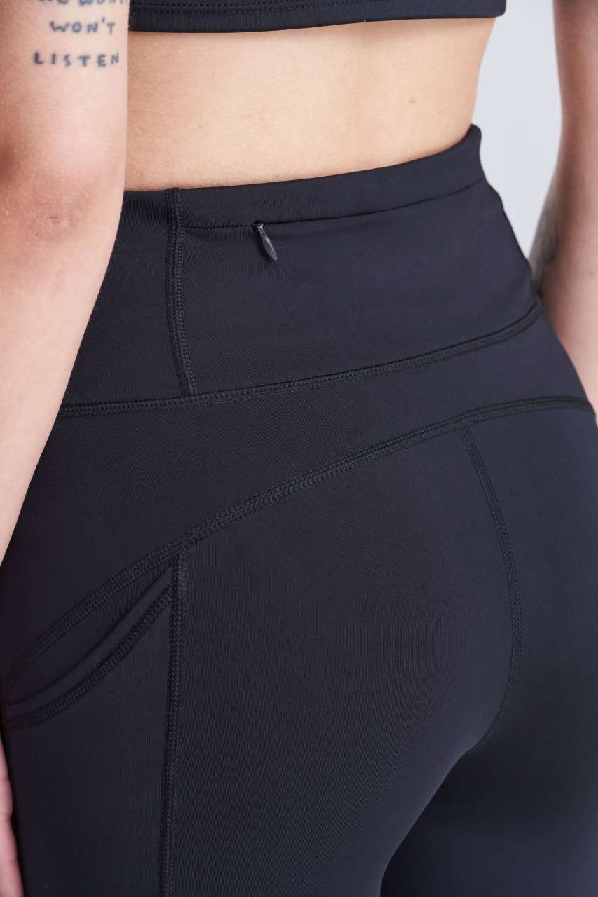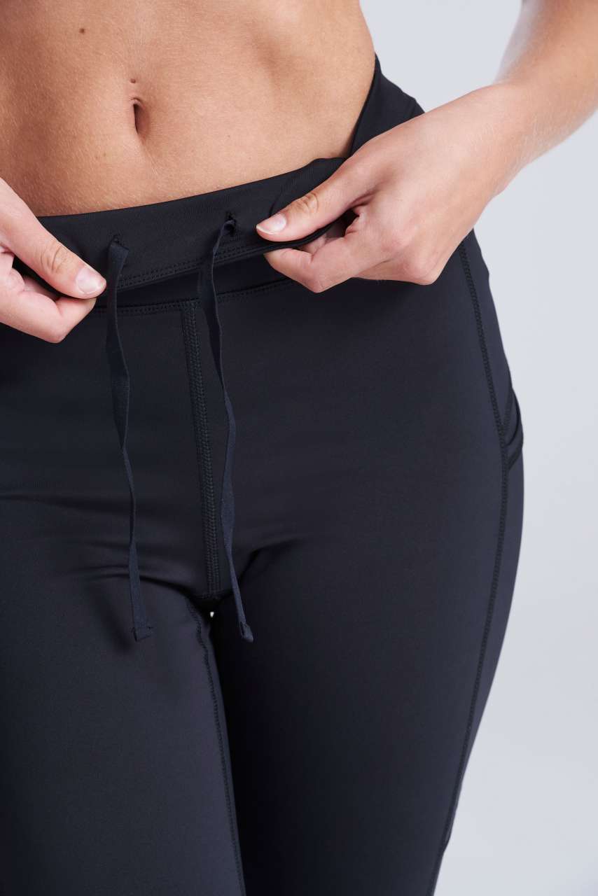 80% Recycled Polyester. 20% Elastane Slim fit 4-way stretch fabric Wicking. quick dry fabric Two side pockets Adjustable waist cord Back zip pocket Ergonomic fit Made with recycled polyester Tear Away Label