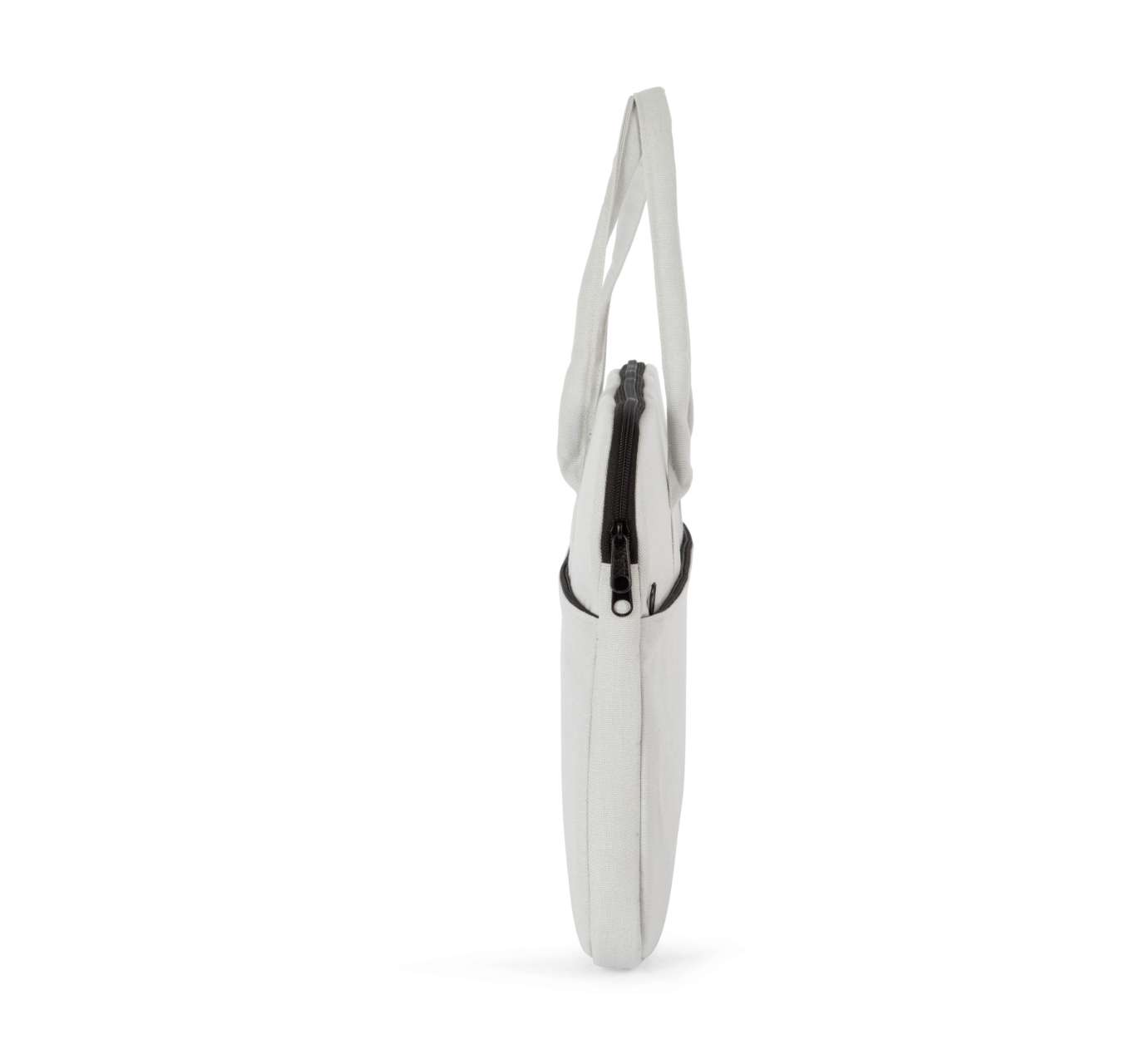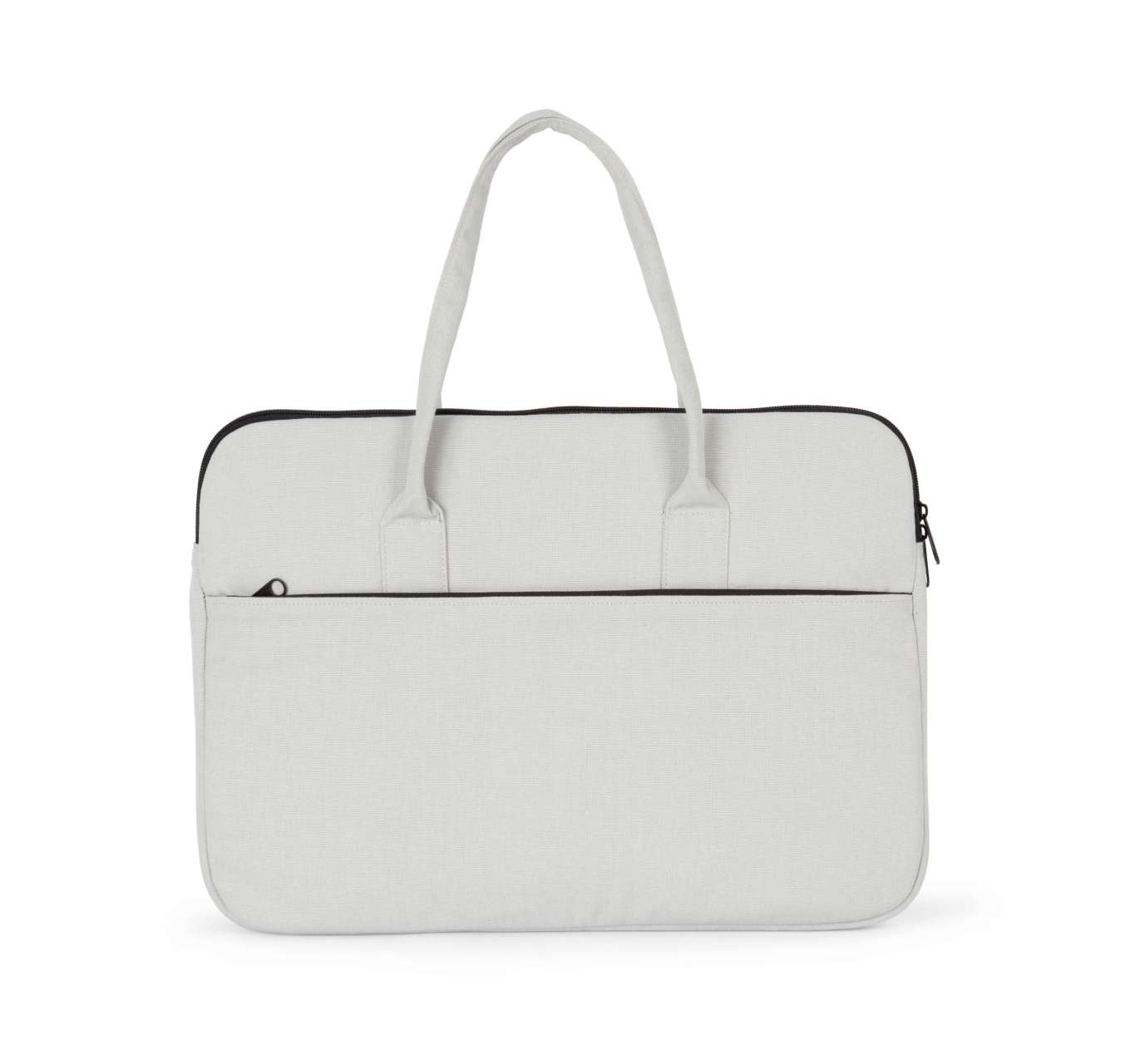 100% cotton Cotton work bag Padded compartment for a tablet or laptop measuring up to 15” Identical front and back pockets with zip fastening for easy decoration access on both sides Handles in the same fabric as the body of the bag